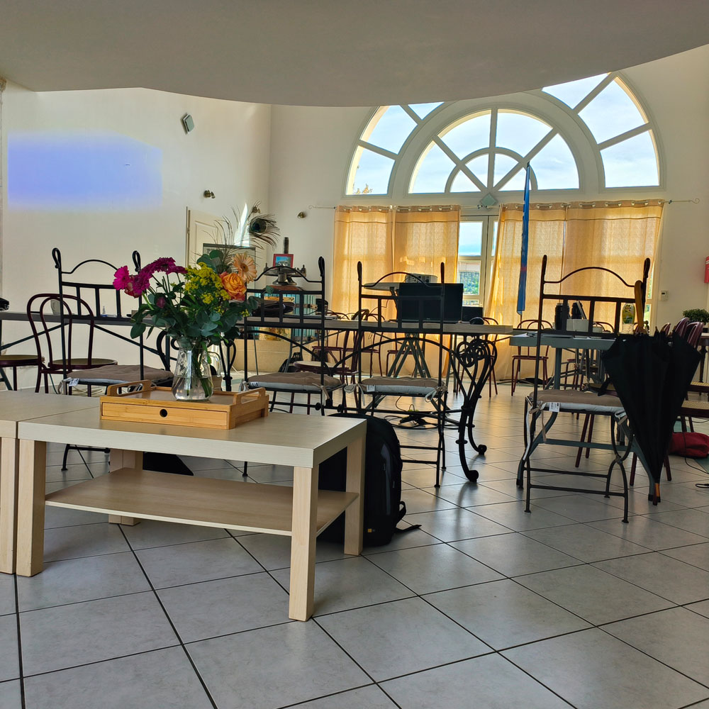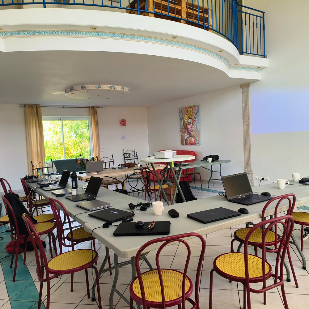 Salle équipée, hébergement et restauration sur place — tout en un seul lieu.