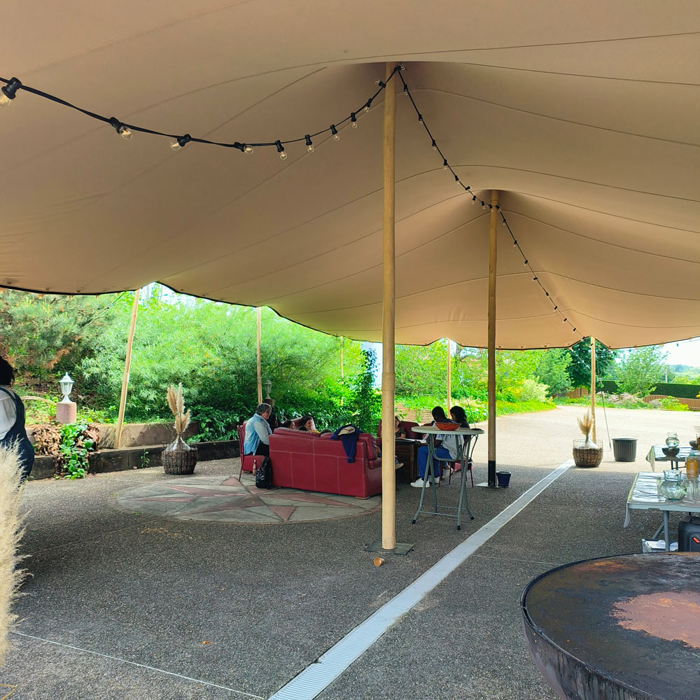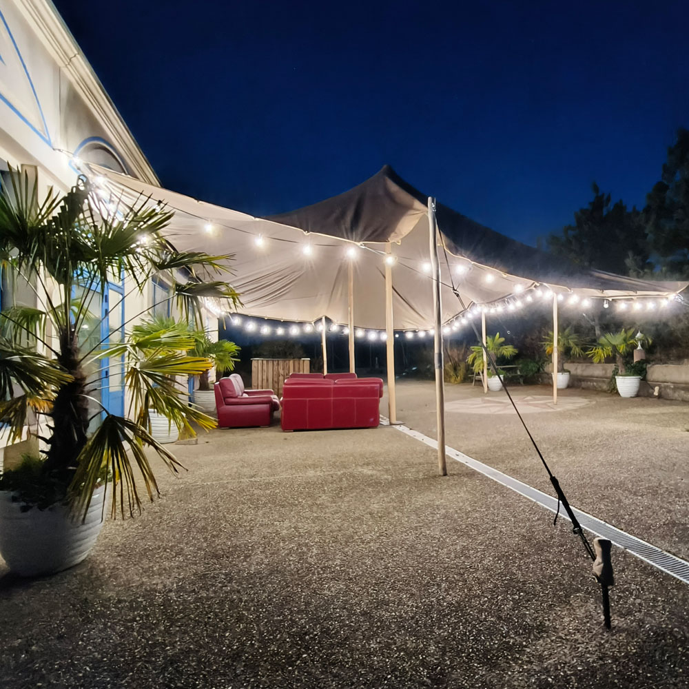 Le domaine propose ses propres prestations de restauration, sans faire appel à un traiteur extérieur : petit-déjeuner en buffet avec produits chauds et froids, repas du midi en salle ou en extérieur, dîner autour du brasero, viandes marinées et buffets sucrés-salés. Chaque repas est une occasion supplémentaire de décompresser et d'échanger dans une atmosphère conviviale et détendue.