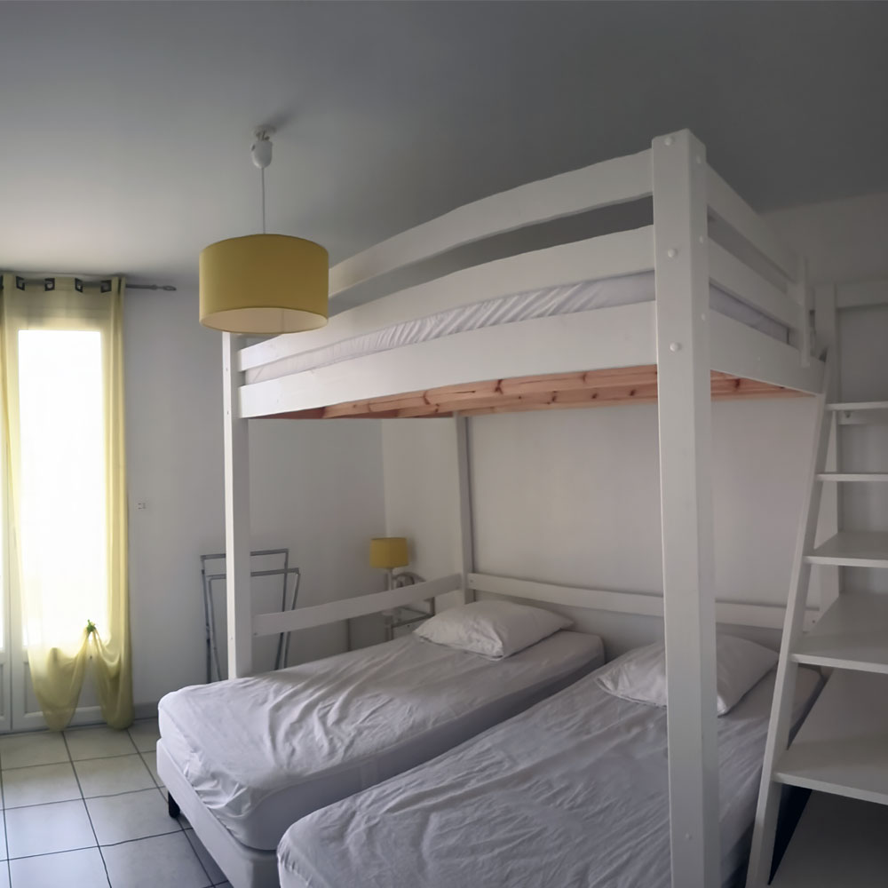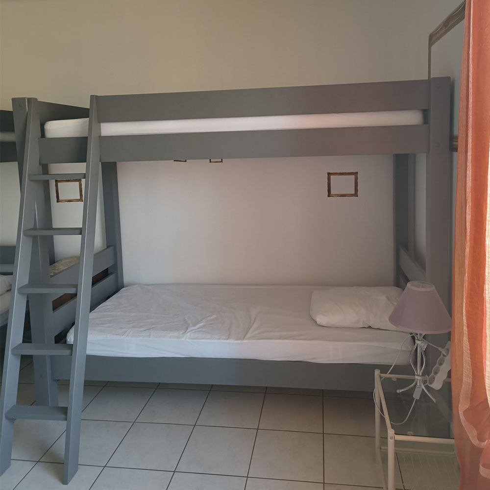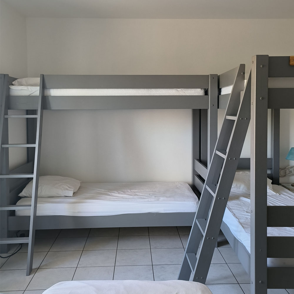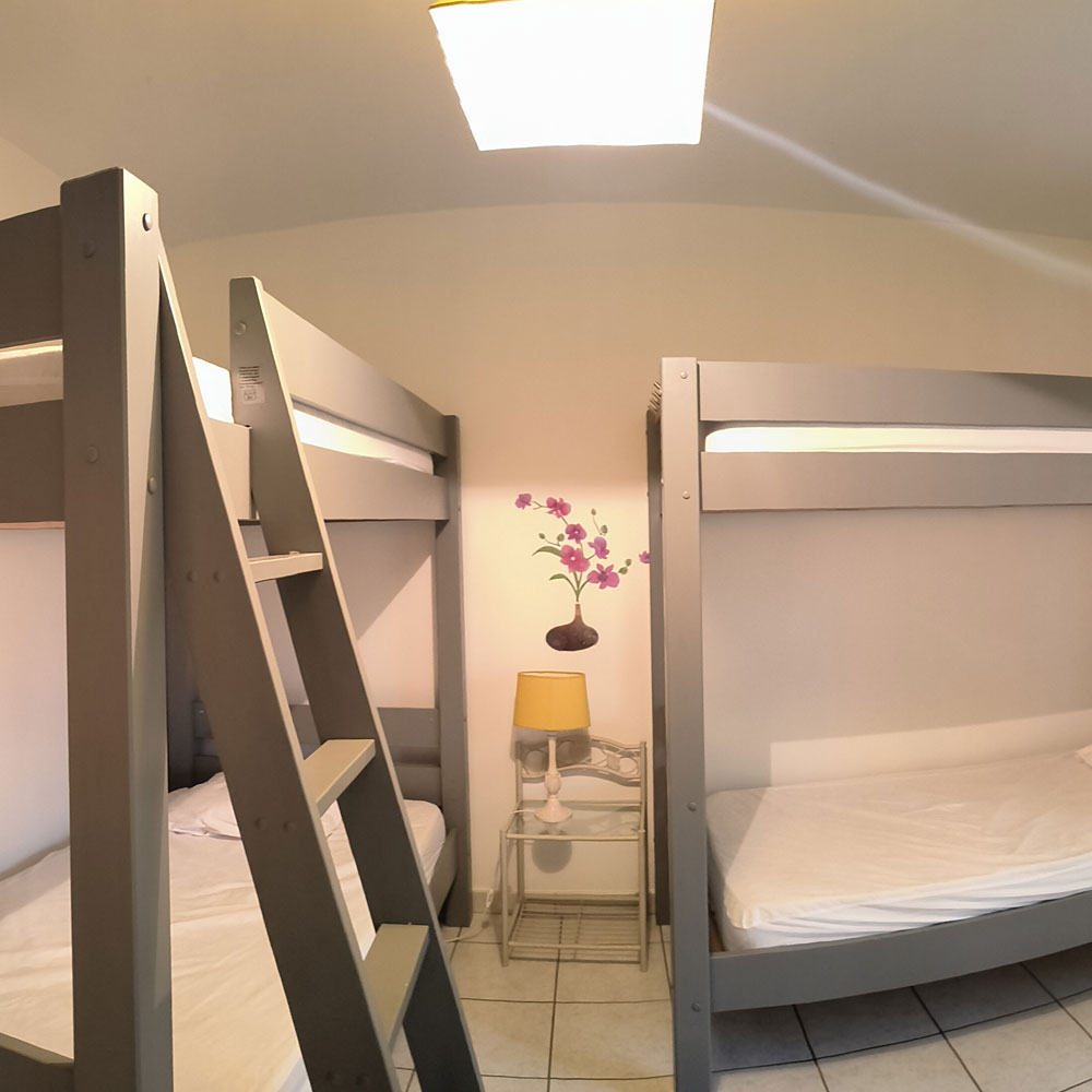 4 personnes, 2×2 lits superposés en 90cm x 190cm, couchages individuels Salle de bain